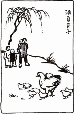 3. 仔细观察图画,想一想:图画上的母亲和母鸡有什么相似之处?
