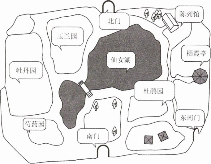 二、星期天,你要带朋友去参观植物园。阅读下面的示意图,完成练习。