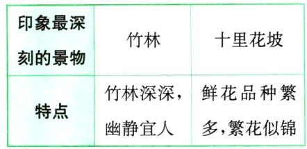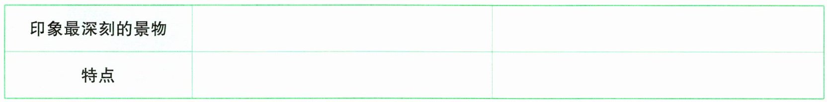 (2)在此次游览中,你印象最深刻的景物有哪些?它们有什么特点?完成下面的表格。