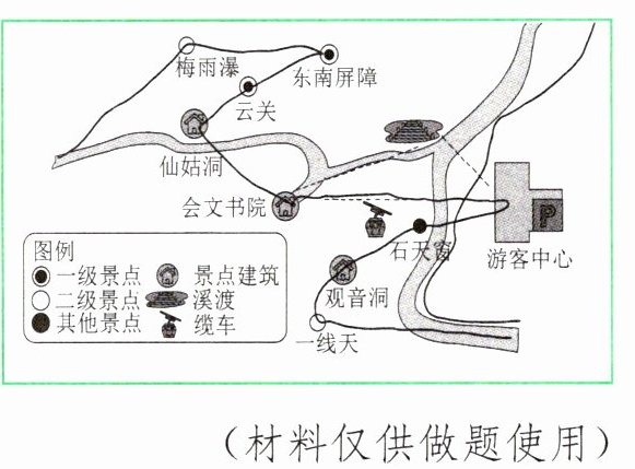 (3)从游客中心到达会文书院,可以乘坐缆车或溪渡。 ( )