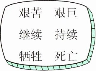 1950年11月,杨根思率领战士们接受了坚守小高岭阵地的(艰巨)任务。这场战斗(持续)了一天一夜,他们打退了敌人的8次进攻。最后杨根思点燃炸药包,与敌人同归于尽,壮烈(牺牲),用生命守住了阵地。