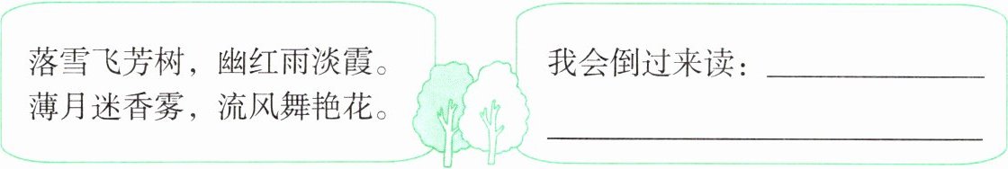 第三关:有趣的回文诗。请把下面的诗句倒过来读一读,并写下来。(目标:501、503)