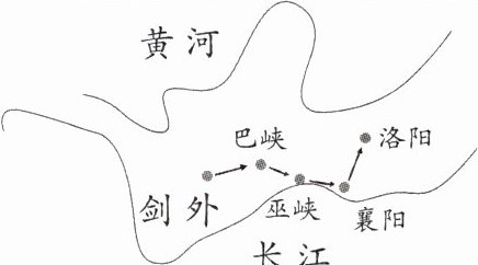 5. 情境题 右边图中用箭头连接的几个地点,让我想起了此诗中的诗句:“____________________,____________________。”路途遥远,诗人却又如此感慨,体现了他____________________之情。