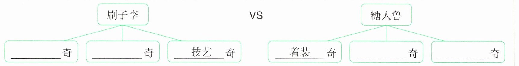 1. 两篇文段中,刷子李、糖人鲁的“奇”分别表现在哪些方面?填写下面的思维导图。