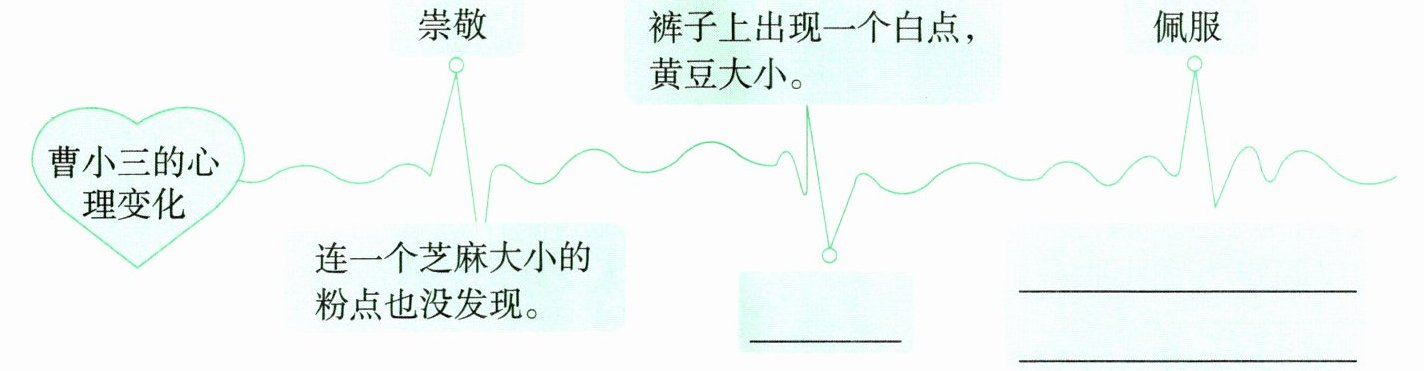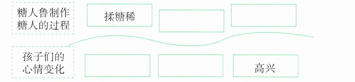 2. 读文段二的第③段,把糖人鲁制作糖人的过程和孩子们的心情变化填在相应的框里。