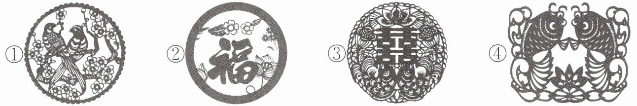 例:图①中有喜鹊和梅花,寓意喜上眉梢。