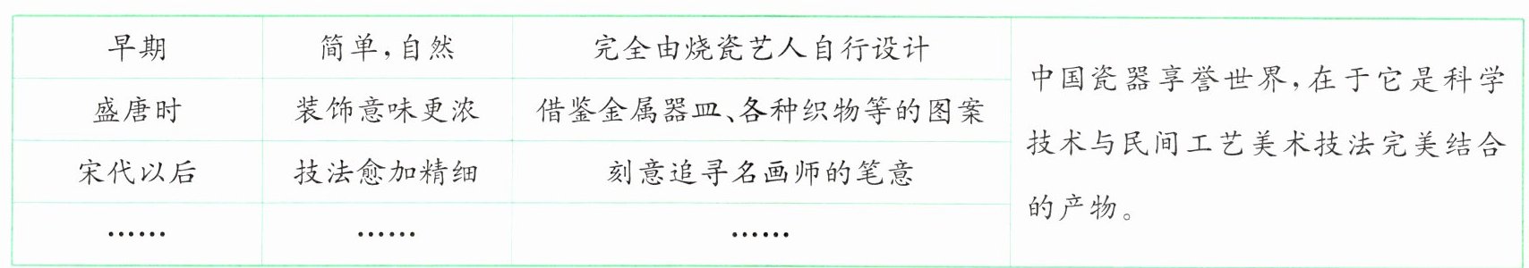 【材料二】中国瓷器纹饰变化发展一览表