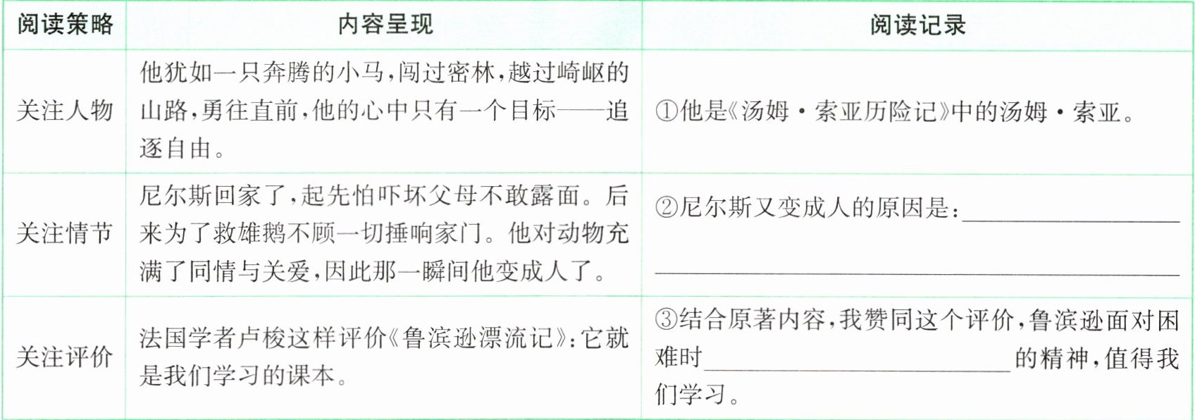 3. 根据材料二,我知道阅读名著的策略有:________________、________________和________________。