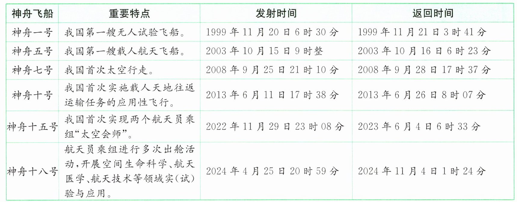 【材料一】2024年4月25日20时59分,搭载神舟十八号载人飞船的长征二号F遥十八运载火箭在酒泉卫星发射中心点火发射。相较于神舟十六号和神舟十七号飞船,神舟十八号飞船的电池容量更大、系统可靠性更高,能更好地支持载人飞行任务。