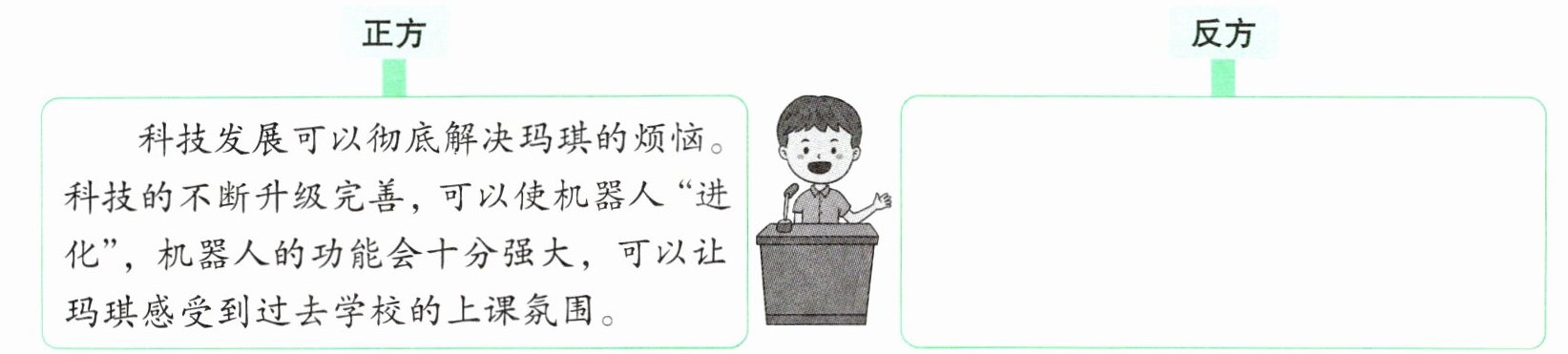 学完课文《他们那时候多有趣啊》后,同学们围绕“科技发展可以彻底解决玛琪的烦恼吗”这个话题开展了辩论会。请你针对正方的发言,站在反方阐述观点。