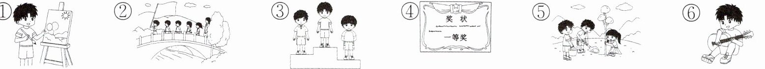1. 淘淘收集了自己小学生活中的一些照片,请按主题进行分类。