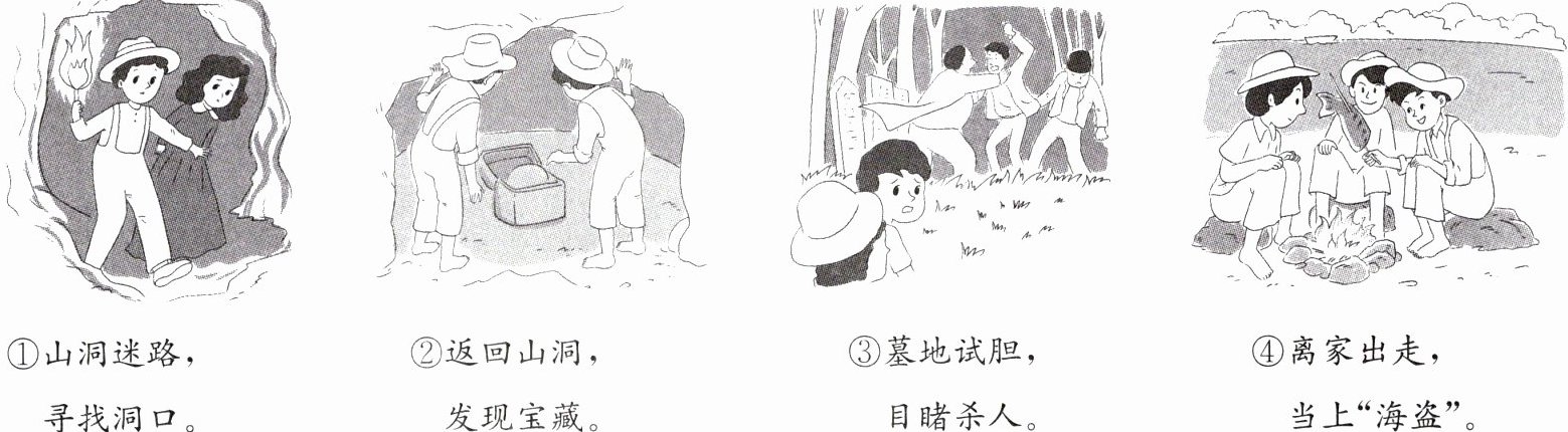 《汤姆.索亚历险记》一书记叙了主人公冒险与成长的经历。下列四个情节按时间顺序排列应该是:( )→( )→( )( )。