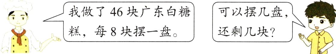 ,每6块放一盘。算式29÷6=4……5中的“5”表示( )