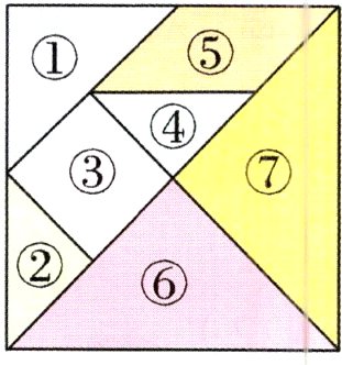 (1) 七巧板中,只有一个直角的是第( )块,有4个直角的是第( )块,第( )块中没有直角。
