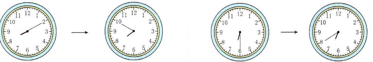 (3)分针从12走到6,走了( )分;时针从12走到1,走了( )时。