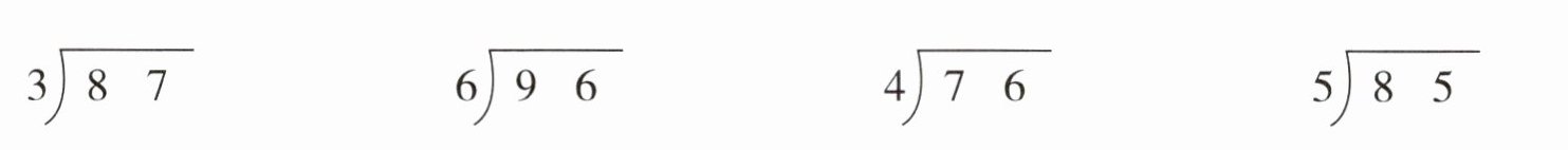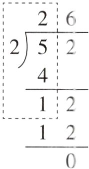 1. 广东真题 将52本书平均分给2个班,每班可以分到几本?如图所示,竖式虚线框内的计算过程表示( )。(填序号)