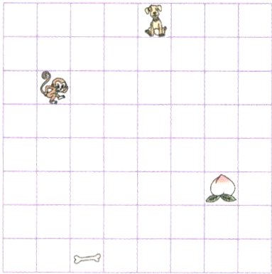 2. 易错题怎样平移,小动物才能吃到自己喜欢的食物?填一填。