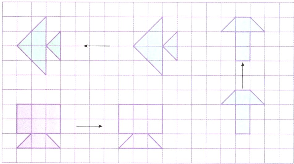 解析:本题考查运用平移的知识进行拼图。把图中的纸片平移时,要沿直线移动,可以向上、向下、向左、向右平移。根据题意,按要求移动,就可以拼出一个房子图案。