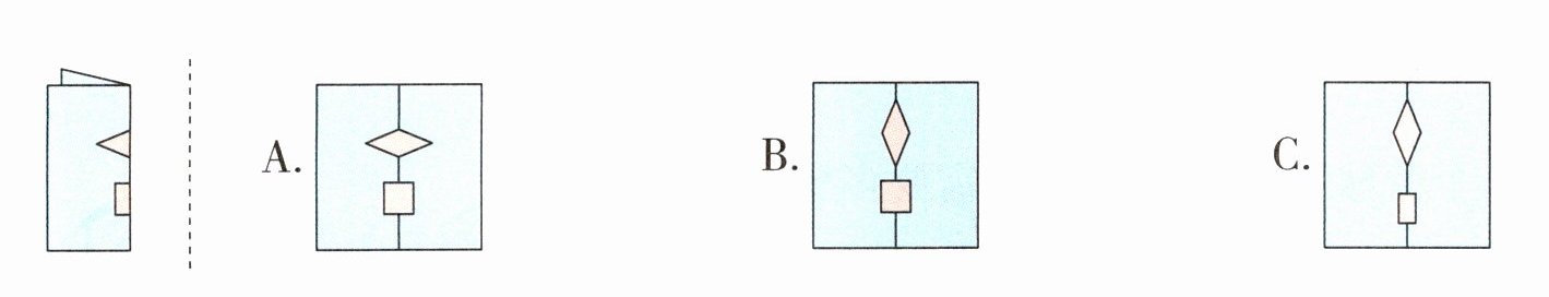 7. 广东真题 淘淘在对折好的纸上剪了两个洞(如左图),打开后是图形( )。(填序号)