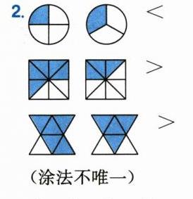 1. 根据分数和已画出的图形,把各图补充完整。(6分)