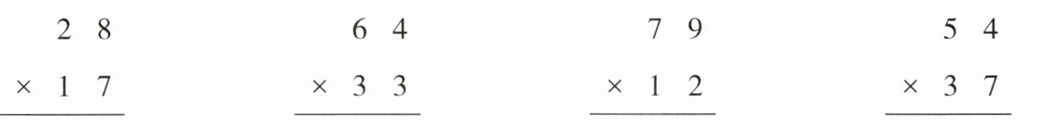 (1)74×82 = 5606( ) (2)46×67 = 2482( ) (3)34×53 = 1802( )