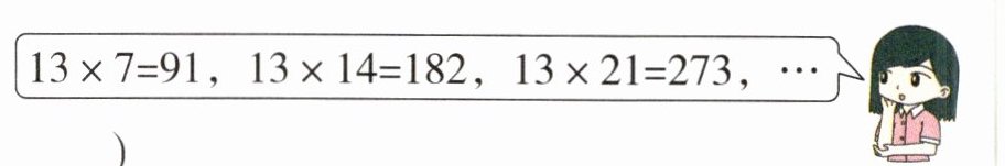 解析:本题考查学生的观察和分析能力。观察前面的三个算式,不难发现,第一个乘数都是13,第二个乘数都是7的倍数,从第二个算式开始,14是7的2倍,积是91的2倍;21是7的3倍,积是91的3倍,由此可以写出下面两个算式的积。