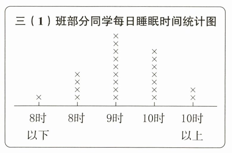 4. 睡眠对小学生的大脑发育、骨骼生长、视力保护、身心健康至关重要。右面是三(1)班部分同学每日睡眠时间统计图。看统计图回答问题。
