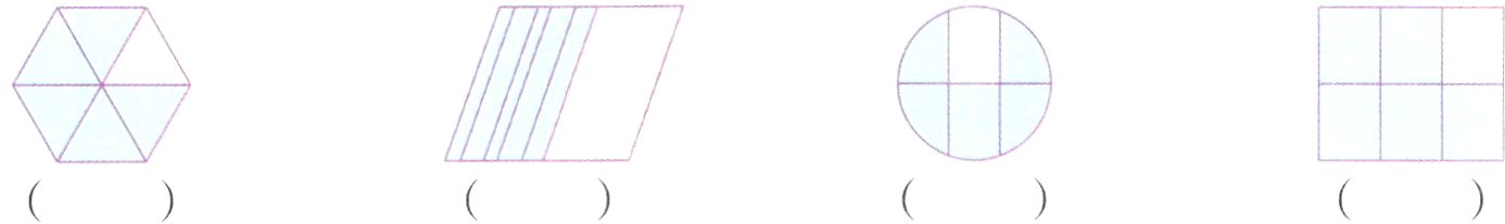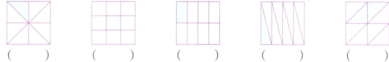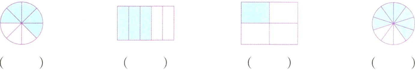 1. 下面涂色部分能表示图形的$\frac{1}{8}$的在( )里画“√”。