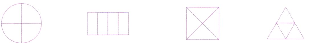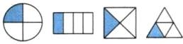4. 分别涂出下面图形的$\frac{1}{4}$。