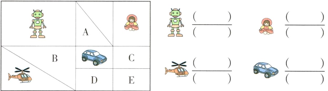 (2)玩具 A 用的面积占玩具柜的 $\frac{()}{()}$。