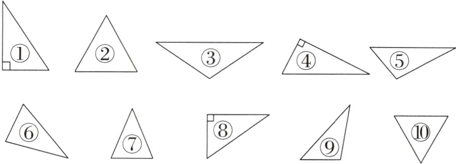 (1)按角分:直角三角形有( ),锐角三角形有( ),钝角三角形有( )。