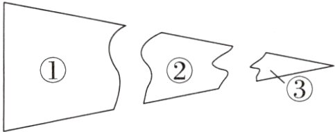 (2)淘淘把一块三角形玻璃打碎成三块(如下图),爸爸要去买一块完全一样的玻璃回来,最好的办法是带( )号玻璃去玻璃店。
