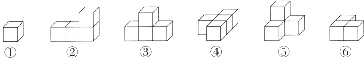 3. 广东真题 壮壮用4个正方体搭了一个立体图形。已知从正面、右面、上面看到的形状完全相同,那么符合上述条件的是( )。(填序号)