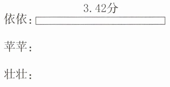 4. 广东模拟 依依、苹苹、壮壮参加航天知识竞赛,答完全部题目,依依用了3.42分,苹苹比依依多用了0.46分,壮壮比苹苹少用了0.23分。壮壮用了多少分? 先把图补充完整再计算。