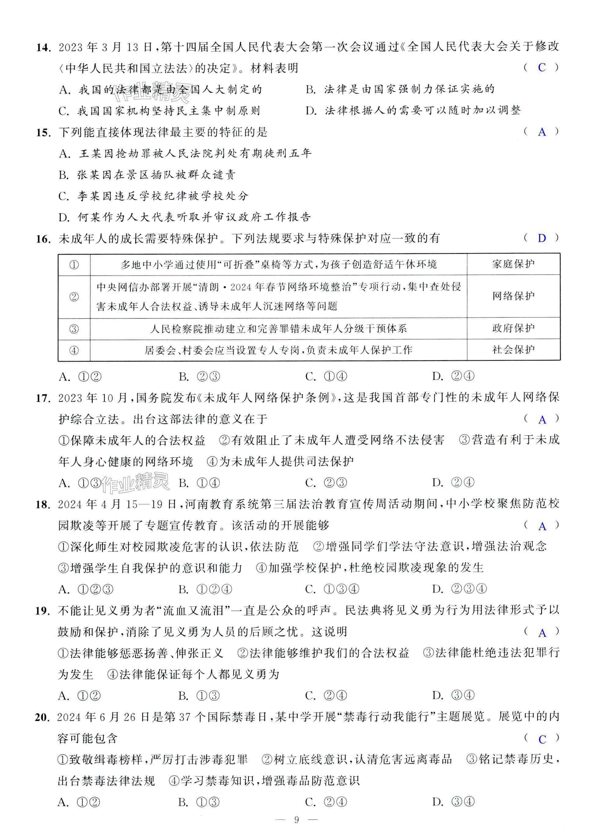 注:目前有些书本章节名称可能整理的还不是很完善,但都是按照顺序排列的,请同学们按照顺序仔细查找。练习册 2025年智慧学习初中学科单元试卷道德与法治总复习 答案主要是用来给同学们做完题方便对答案用的,请勿直接抄袭。