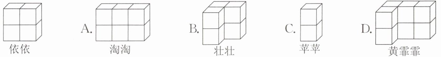 (4)如下图,依依用大小相同的小正方体搭了一个模型,( )搭的模型是依依模型体积的 2 倍。