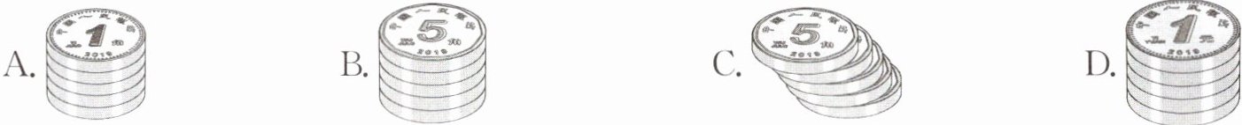 (2)用相同数量的硬币分别垒成下面的形状,( )的体积大。
