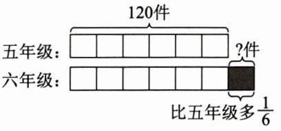 4. 在科技创新大赛中,五年级上交参赛作品$120$件,六年级上交的参赛作品比五年级多$\frac{1}{6}$,六年级上交的参赛作品比五年级多多少件?(先画图表示,再列式计算)