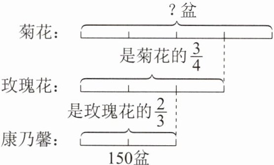 $150\div\frac{2}{3}=225$(盆) $225\div\frac{3}{4}=300$(盆)