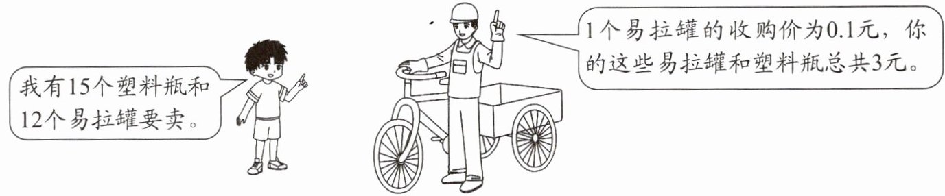 (2)$15$个塑料瓶的收购价$+12$个易拉罐的收购价$=$收购总价 $15x + 12×0.1 = 3$