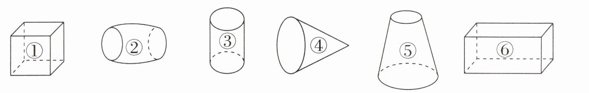 4. (1) 下面立体图形中,( )不能用$V = Sh$求体积。(填序号)