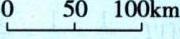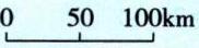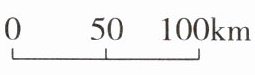 表示图上1cm代表实际距离50km,300km里面有几个50km,画在比例尺为