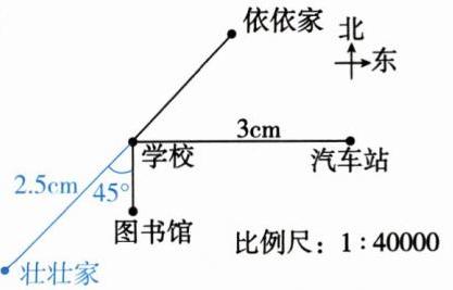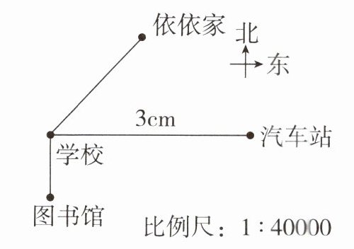 (1)解:设学校到汽车站的实际距离有xcm。 3:x = 1:40000 x = 120000 120000cm = 1200m