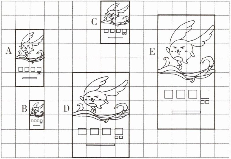 1. 易错题 下面图形( )是图形 A 按$2:1$的比放大后的图形,图形( )是图形 A 按$1:2$的比缩小后的图形。(填序号)