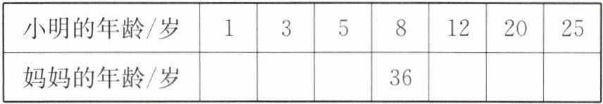 3. 今年小明8岁,妈妈36岁,根据这个信息把表格填写完整。