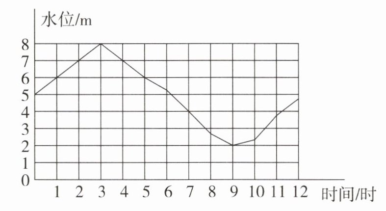 8@@2@@在0时~3时和9时~12时这两个时间段水位上升;在3时~9时这个时间段水位下降。@@时间@@水位