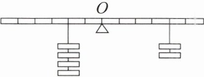 3. 思维题 如图,将一根质量均匀的米尺在中点$O$处支起,两端分别挂有4个砝码和2个砝码,恰好使米尺平衡。(砝码的质量均相同)