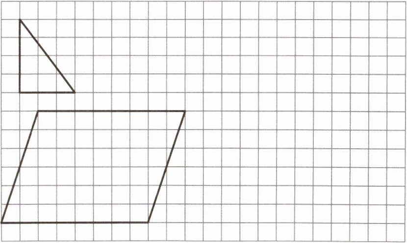 4. 画一画。将三角形按$3:1$的比放大,将平行四边形按$1:2$的比缩小。