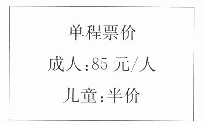 解析:(1)读图可知,成人票价是85元/人,儿童票价是半价,也就是(85÷2)元/人。依依一家有两个成人和一个儿童,已知单价和数量,就可以求出依依一家的往返车费。(2)4天的住宿费和餐费已知,可求出平均一天的住宿费和餐费,然后乘2就得到他们再住2天需要交的钱。