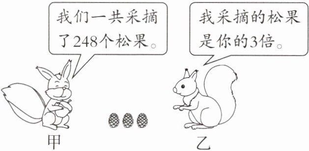- (2)甲、乙两只松鼠各采摘了多少个松果?